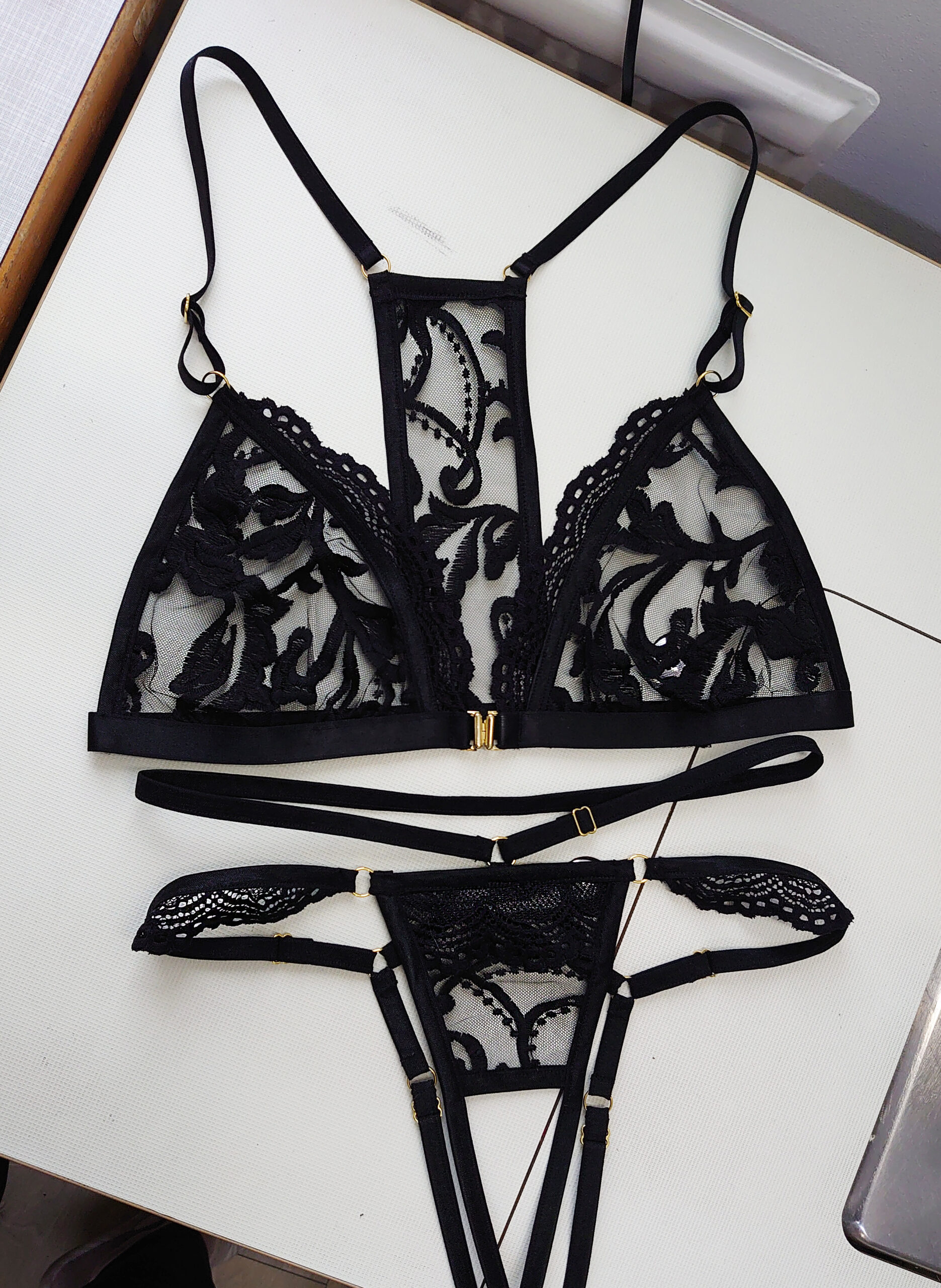 Materiał i dodatki: haft elastyczny, koronka elastyczna, lamówki, gumy elastyczne, metalowe elementy w kolorze złota, jeśli zamówisz pełną wersję dołu, w kroku wszyta wkładka 100 % bawełny.